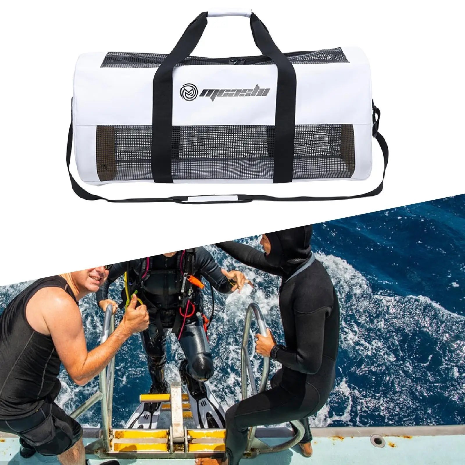 Trasporta la tua attrezzatura da sub con la massima comodità e praticità grazie alla nostra Borsa a Rete da 60L. Progettata per soddisfare le esigenze di ogni appassionato di sport acquatici, questa borsa è l'alleato perfetto per mantenere la tua attrezzatura organizzata, protetta e pronta per l'azione.