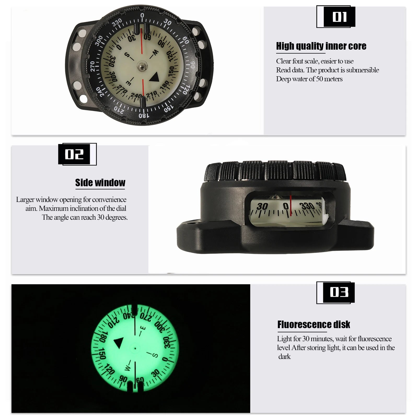 Bussola subaquea per profondità fino a 50mt