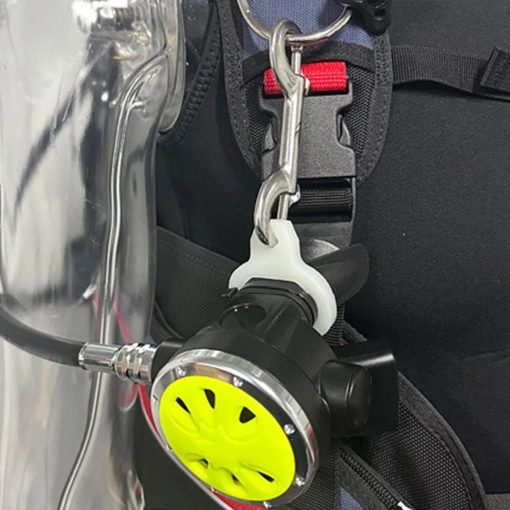 Sicurezza Subacquea: Il design con fibbia a sgancio rapido ti permette di agganciare e staccare l'erogatore con una sola mano, offrendo una risposta rapida e una regolazione efficiente in qualsiasi situazione.