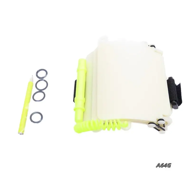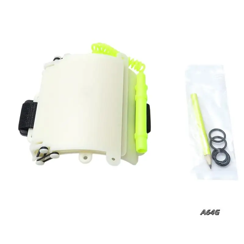 Visibilità Eccezionale: La sua colorazione bianco crema e le superfici scrivibili sono progettate per essere altamente visibili. La lavagnetta è anche luminosa, permettendoti di leggere e scrivere chiaramente anche in condizioni di scarsa luce, come nelle immersioni notturne o in acque profonde.