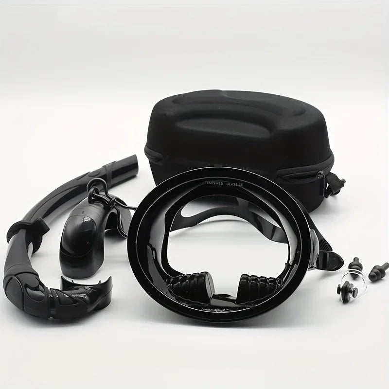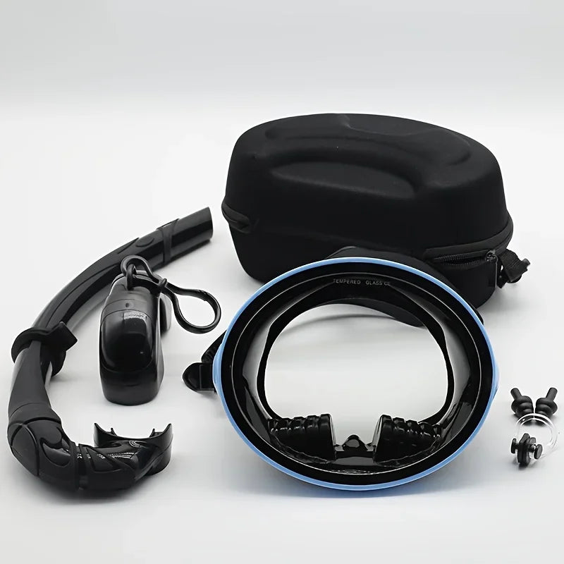 Kit Maschera da Snorkeling Ovale Professionale con boccaglio pieghevole e compatto, con custodia semirigida