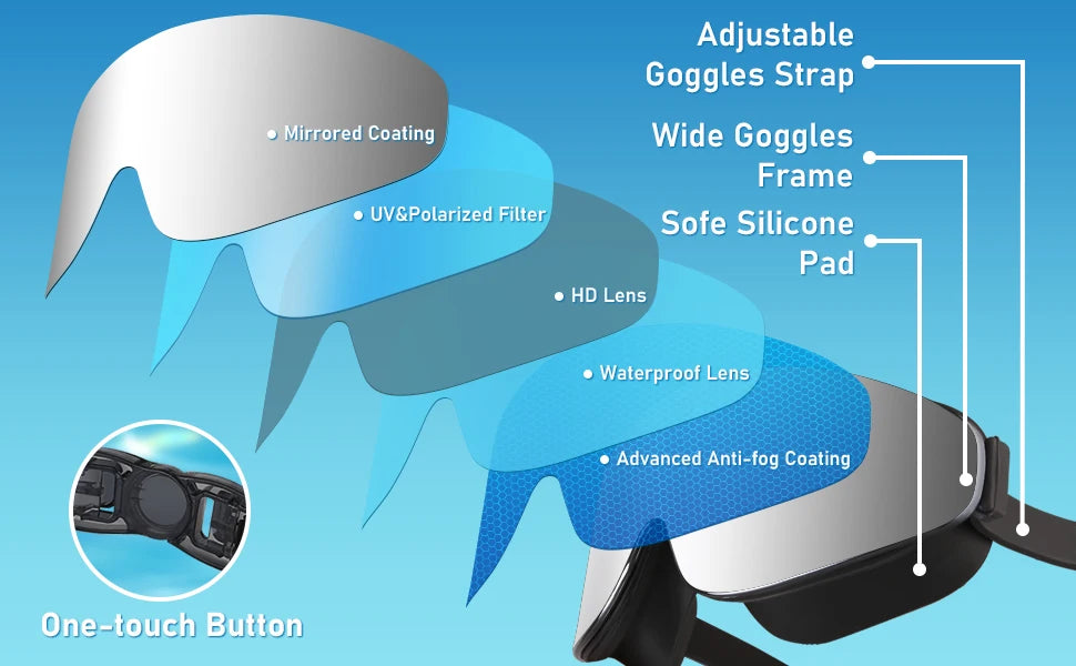 ✔ Lenti Polarizzate HD – Bloccano il 99% dei raggi UV e riducono i riflessi per nuotate più sicure anche all’aperto