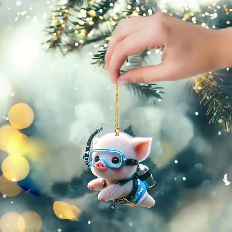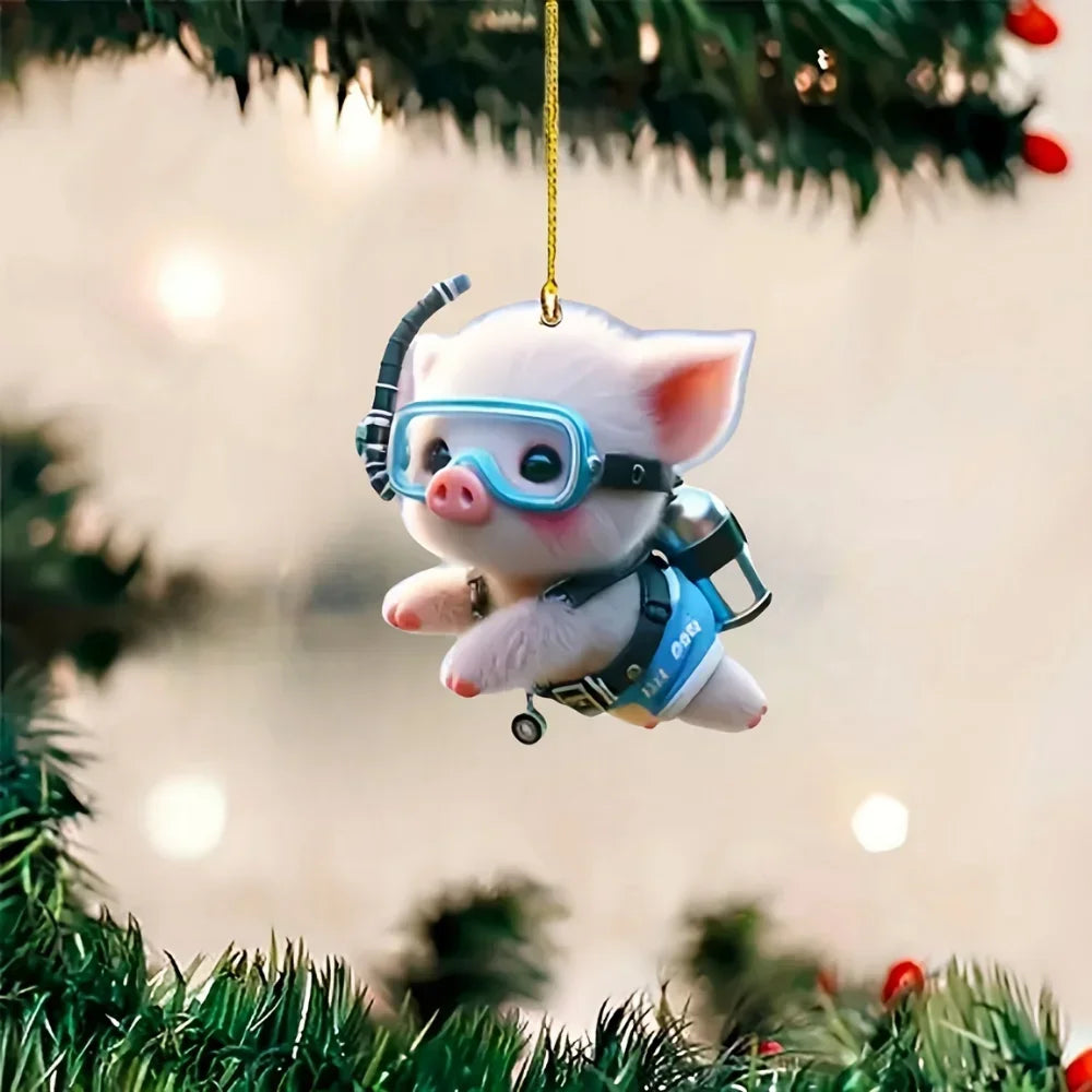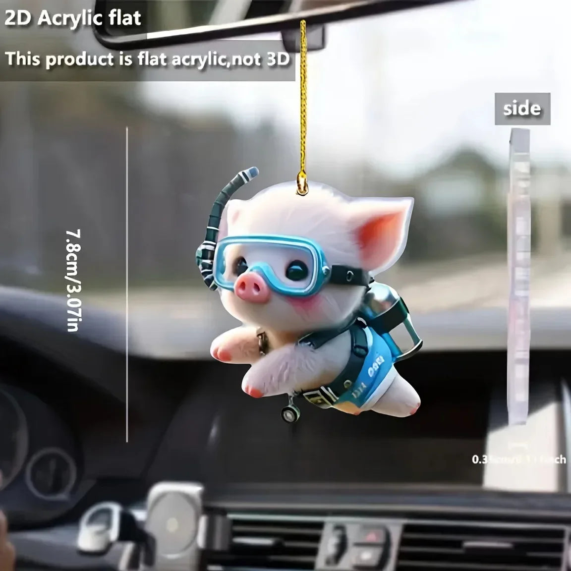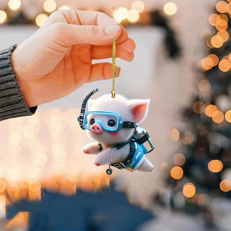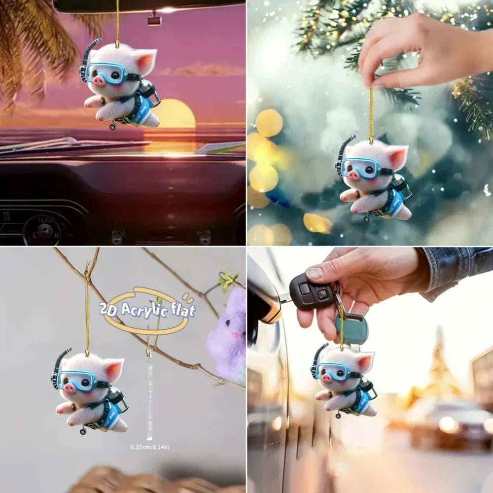 Cute Diving Piglet Keychain Versatile Charm Cartoon Piggy 2D Acrylic Pendant for Car Mirror,Backpacks,Festive,Party,Gift & Decor