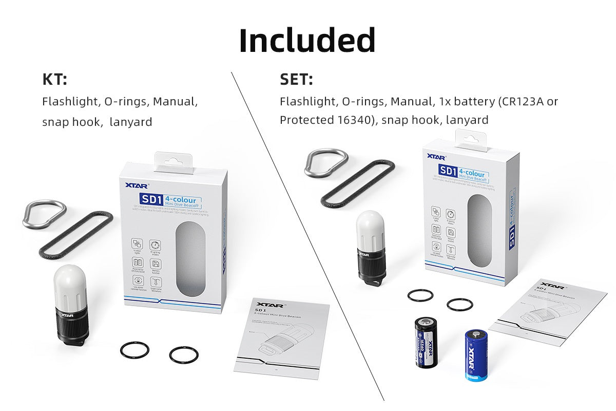Batterie compatibili: 1× CR123A o 1× 16340 ricaricabile