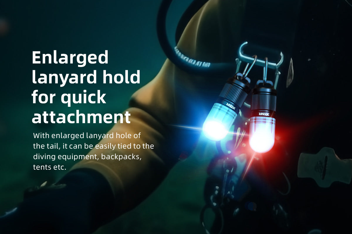 Illumina le tue immersioni, il faro segnalatore compatto e ultra luminoso con 4 colori LED e 8 modalità di illuminazione.